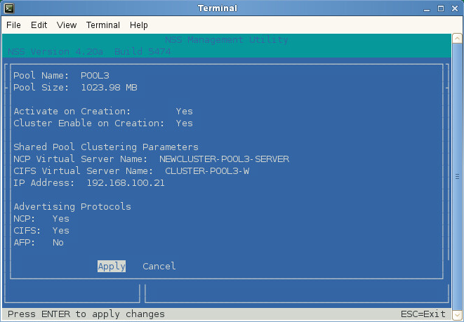 Create a cluster pool with CIFS as the Advertising protocol.