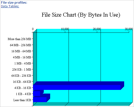 File Size Profiles reports the size of files, grouped by the following size ranges: