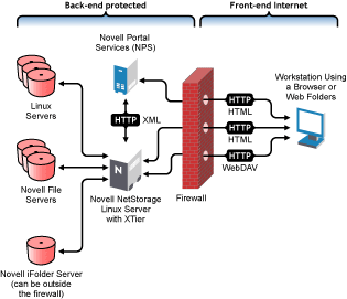 NetStorage is installed on the OES server that acts as a Middle Tier (also known as XTier) server. Middle Tier server configuration information is stored in an XML file on the server. Novell iManager provides an easy method for changing Middle Tier configuration. XTier is the Novell Web services framework and is used by various Novell products.