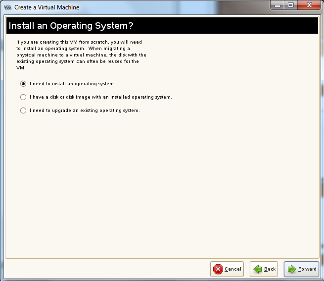 Read the Create a Virtual Machine welcome page, then click Forward.