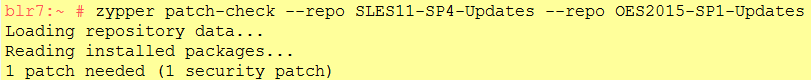 zypper patch-check --repo SLES11-SP4-Updates --repo OES2015-SP1-Updates