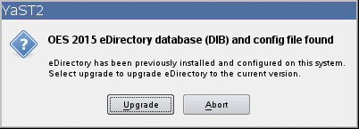If you are upgrading from OES 11 SP2, this dialog will show that the OES 11 eDirectory database (DIB) and config file were found.