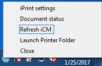 On Windows workstations, the iPrint Client adds an icon to the notification area. The iPrint icon lets you receive notification when a job has printed and lets you quickly access iPrint Client settings. Right-clicking the icon displays the following menu options:
