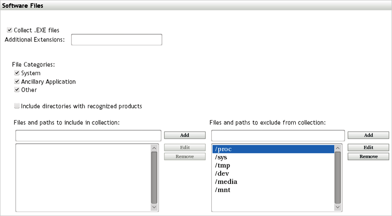 In addition, some directories must be excluded from the inventory scan because they contain content that is not of interest from an inventory perspective: