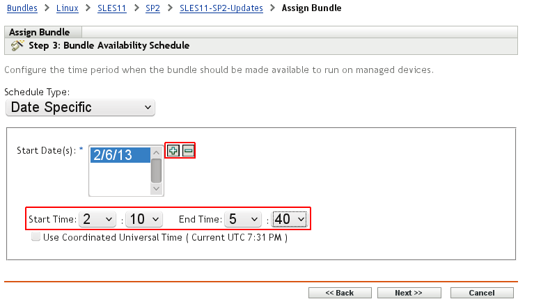 Manual patch deployments are not suitable if large numbers of devices must be managed via ZENworks Configuration Management. For such environments, bundle assignments can be scheduled either for a particular date and time, a random time, after the next device refresh, or a time relative to the next device refresh.