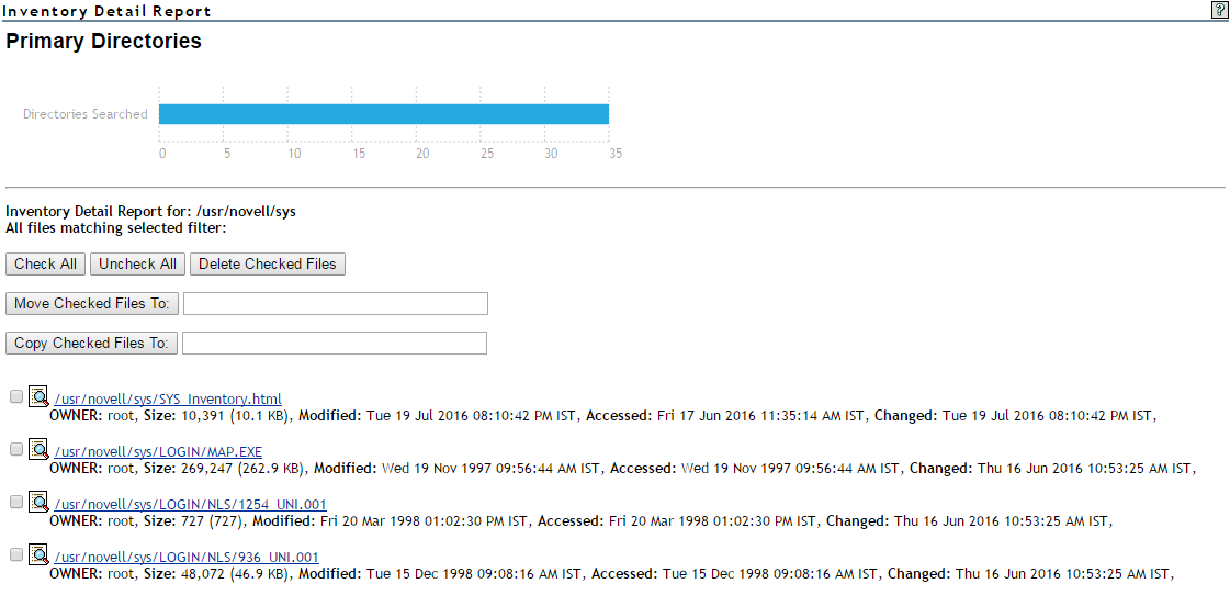 After generating an inventory report for a volume or directory, you can create a customized scan to report more specific information and perform additional actions on the files selected in the report, such as move, copy, or delete.