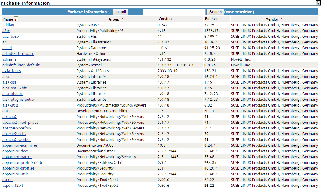 When the Install button is clicked on the View Package Information page, Novell Remote Manager attempts to install the specified RPM file using the Linux RPM utility.