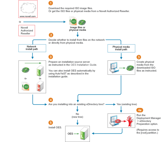 CD/DVD Install: You can install SLES 11 SP4 by using a DVD and then install OES 2015 SP1 from a CD, both of which can be either obtained from a Novell Authorized Reseller or created from downloaded ISO image files.