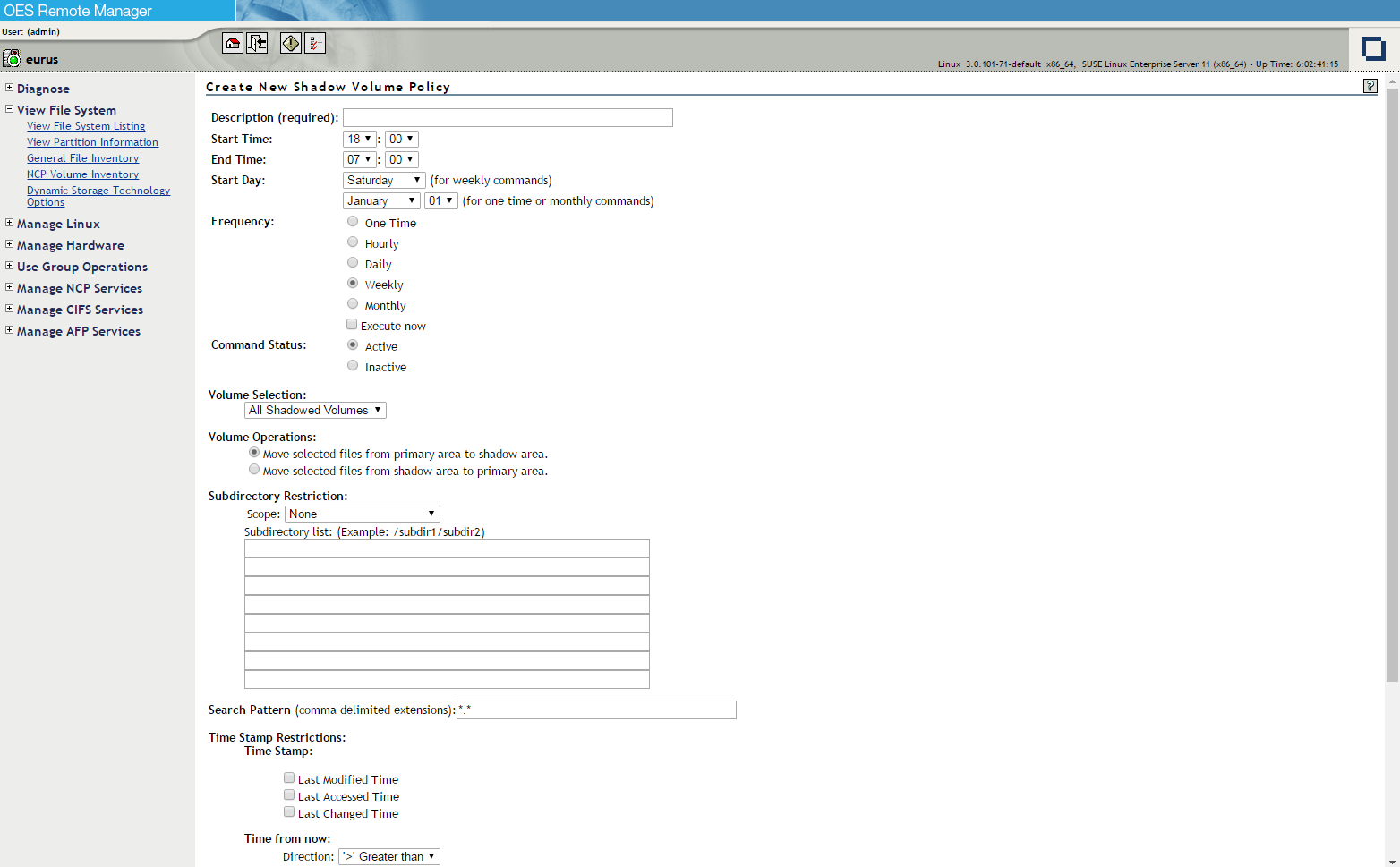 1. In OES Remote Manager for Linux, select View File System, then select Dynamic Storage Technology Options to open the Dynamic Storage Technology Options page.