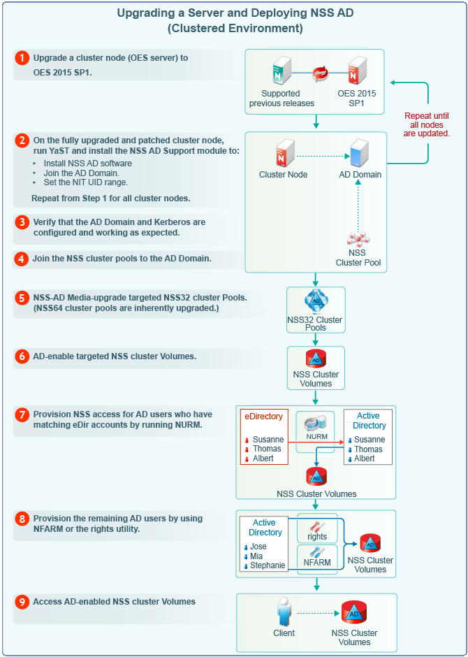 See also, AD-enable the Volume and Volume AD-enabling in the OES 2015 SP1: NSS File System Administration Guide for Linux. |