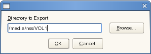 Specify the NSS volume that you want to export by typing the Linux path for the volume, or browse the Linux file system to locate and select the NSS volume, then click OK.