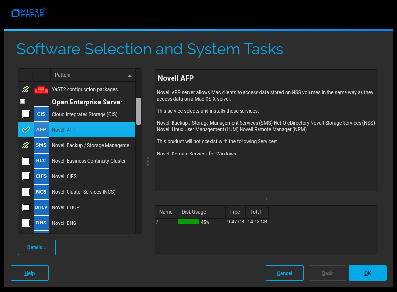 For information about the entire OES installation process, see the OES 2018 SP2: Installation Guide.