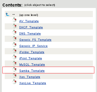 In the Inherit From Template field, browse to the Cluster object for the cluster, then select the Samba resource template (Samba_Template) from the list.