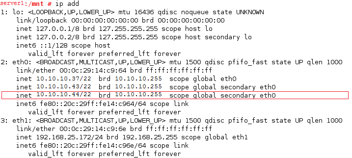 # define the IP address RESOURCE_IP=10.10.10.44 # define the file system type MOUNT_FS=ext3 #define the volume group name VOLGROUP_NAME=sambavg44 # define the device MOUNT_DEV=/dev/$VOLGROUP_NAME/sambavol44 # define the mount point MOUNT_POINT=/mnt/smbvol44