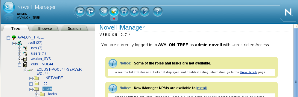 In the iManager toolbar, select View Objects to go to the Tree View.