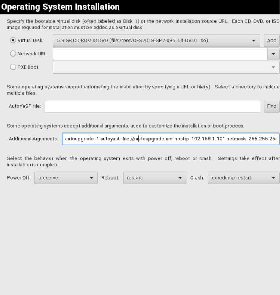 os=sles12 vm-install --vm-settings /etc/xen/vm/<guest>.xml --os-type $os --os-settings http://<the web server IP>/download/autoupgrade.xml