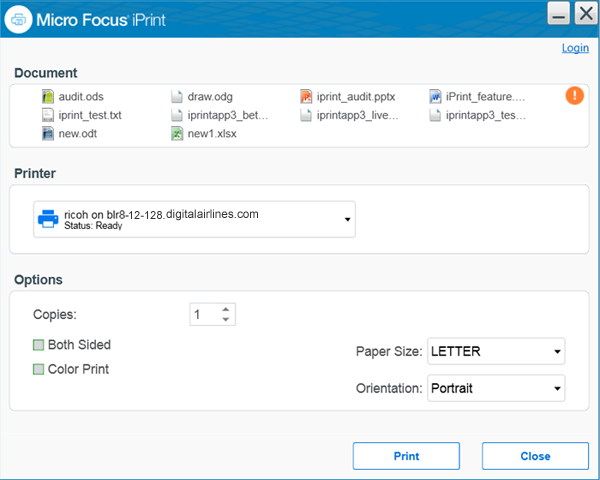 1. Right-click on a file or files, then select iPrint, an iPrint dialog is displayed.