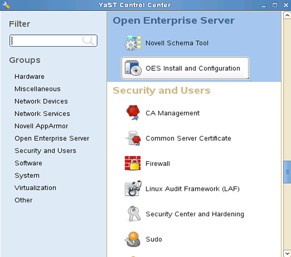 2. Click Group > Open Enterprise Server > OES Install and Configuration.