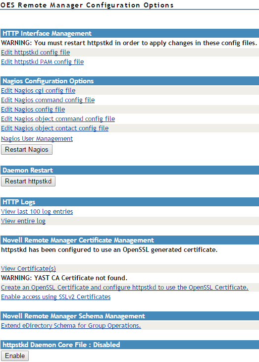 Figure 6-1 The OES Remote Manager Configuration Options Page
