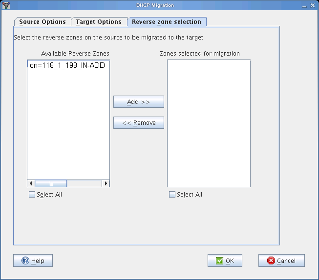 In the Reverse Zone Selection tab, select the reverse zones in Available Reverse Zones. Click Add to add all the selected zones. Use the Ctrl key to select multiple zones.