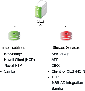 Both eDirectory and Active Directory are supported as identity sources, and OES enables the NSS file system to accept Active Directory identities as trustees. Active Directory users can authenticate to Active Directory and natively access the NSS resources using the CIFS protocol.