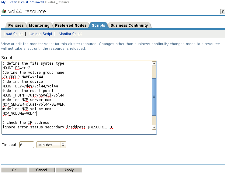 Click the Monitor Script link to view or modify the monitor script. Click Apply if you make changes.