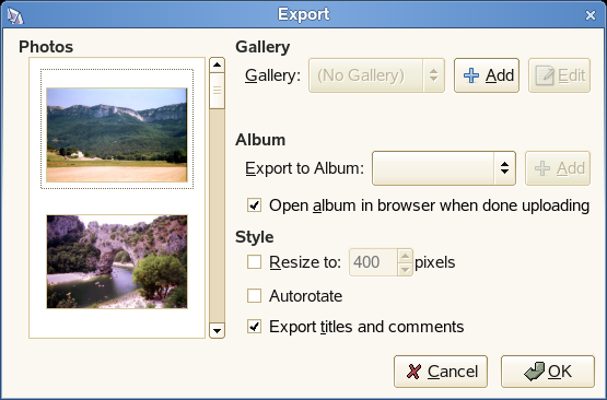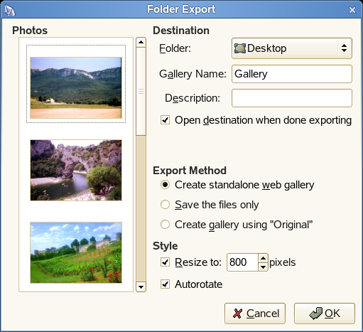 F-Spot offers a range of export functions for your photo collections: