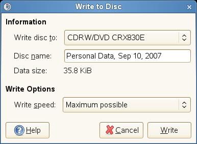 F-Spot copies the files and opens the Write to Disc dialog box.