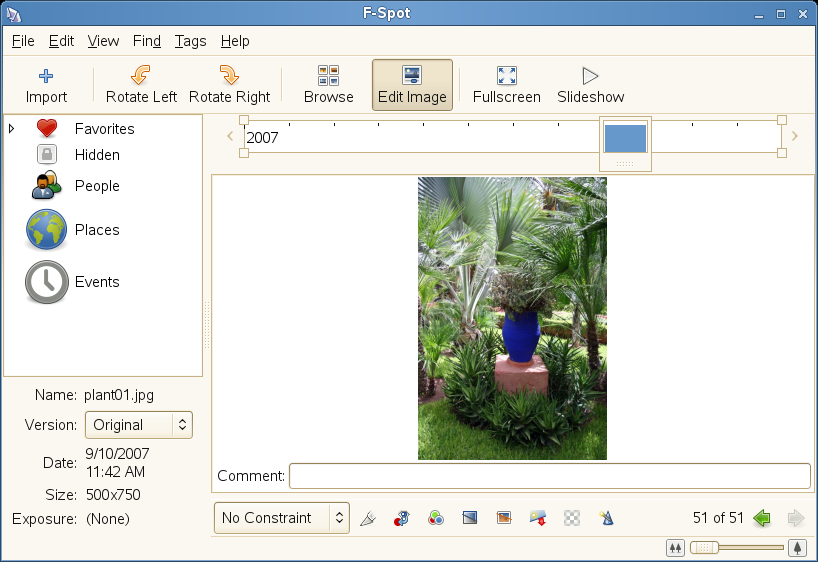 F-Spot offers several basic image editing functions, such as the ability to remove red-eye, crop, and adjust colors and brightness.
