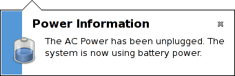 Figure 1-11 GNOME Power Manager Notification When AC Adapter is Removed