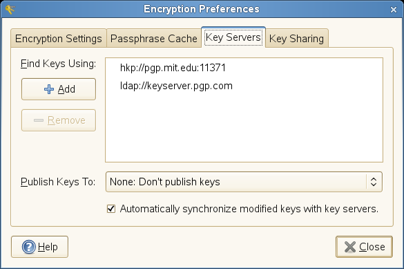 Passwords and Encryption Keys provides support for HKP and LDAP keyservers.