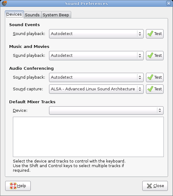 Figure 2-39 Sound Preferences Dialog—Devices Page