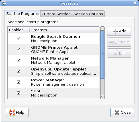 Startup Programs: Lets you specify non-session-managed startup applications, which start automatically when you start a session.