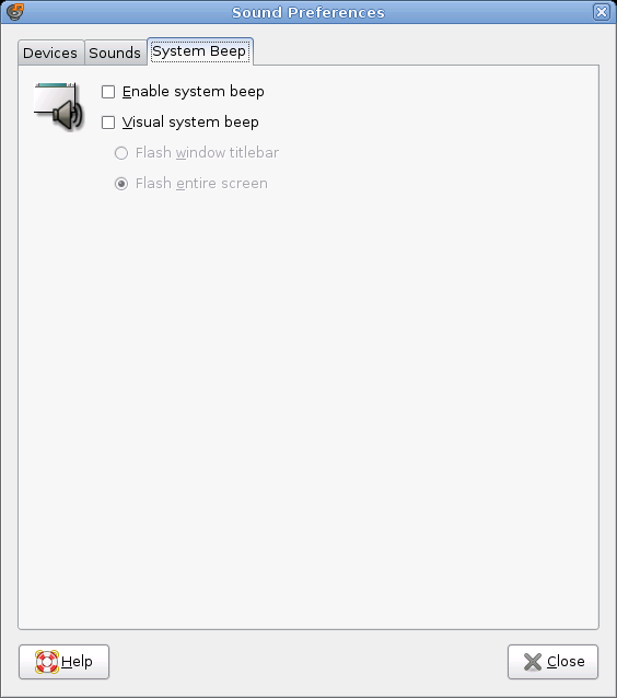 Some applications play a beep sound to indicate a keyboard input error. Use the tab to set preferences for the system beep.