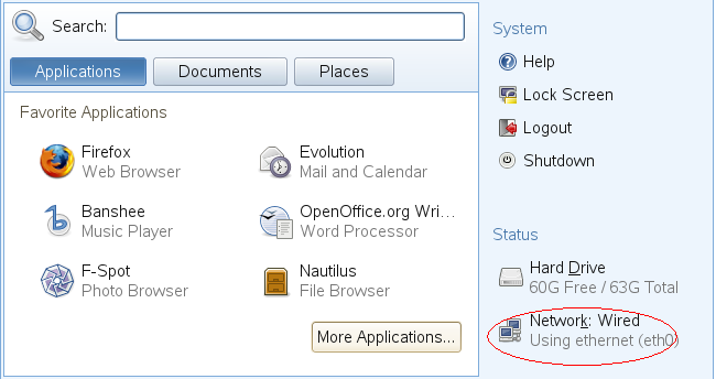 You can connect to a network with wired and wireless connections. To view your network connection status, click In the area of the main menu, The icon shows your network connection status. For example, in the following figure, the computer is connected to a wired network using an Ethernet connection.