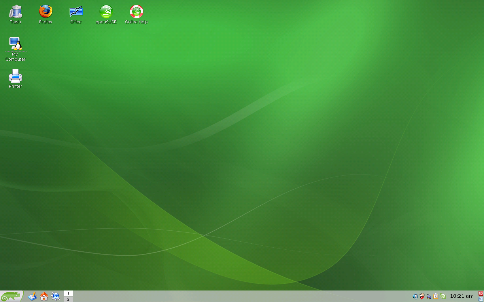 If you are coming from Microsoft Windows*, take a look at how familiar elements of Windows translate to openSUSE®. After logging in, you will notice that the desktop has a well-known layout and recognizable icons, many of them similar to the Windows and Macintosh desktops.