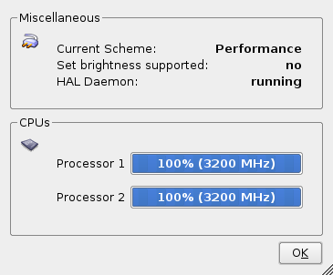 Apart from telling you at which speed your CPU or CPUs are running, KPowersave provides detailed information on the power saving mode your system is in:
