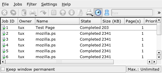 Figure 1-16 Monitoring Print Jobs with KJobViewer