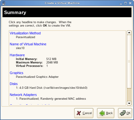 NOTE: It is no longer recommended that you edit the initial creation files stored in etc/xen/vm, which are used only during the creation of a new virtual machine.