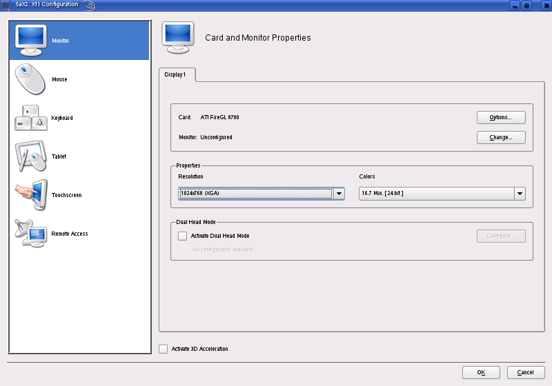 In YaST, click . SaX2 checks the system resources and displays the dialog.
