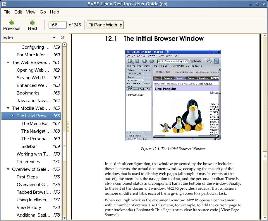 Documents that need to be shared or printed across platforms can be saved as PDF (Portable Document Format) files in the OpenOffice.org suite. openSUSE ships with several PDF viewers, such as Evince and Adobe* Acrobat* Reader.