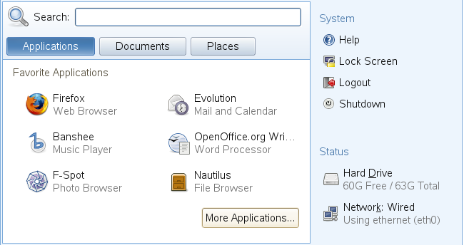 You can also add an icon to your panel that opens a more traditional version of the main menu. Right-click a blank space on the panel, select , then double-click .