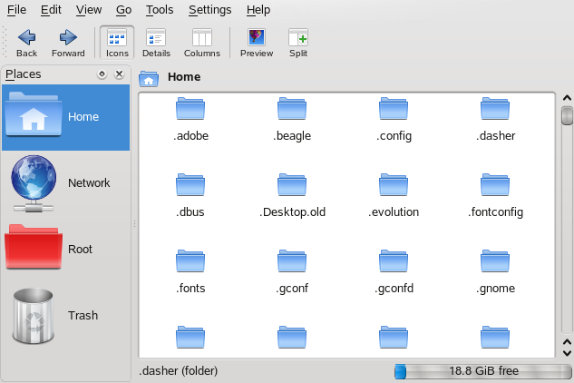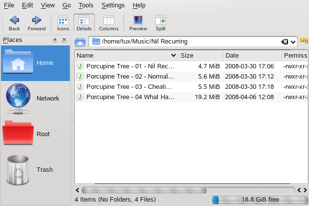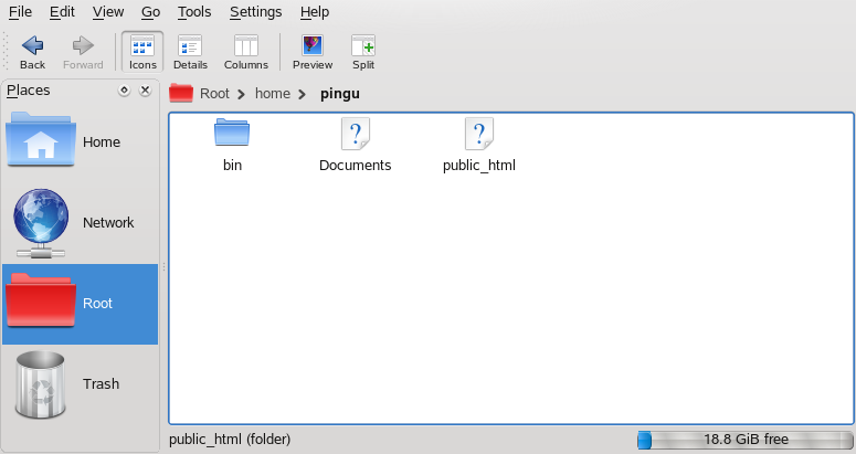 Panels: By default, Dolphin shows only the panel on the left. It allows quick access to some often used places like your home directory, the /root directory of the file system, the trash bin, or removable media. There are several other panels you can add to the main window.