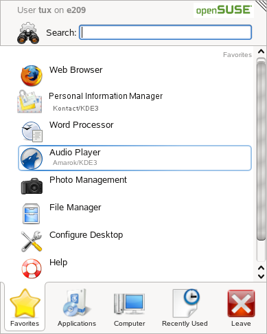 Start programs from the main menu or from the command line, using the dialog or a shell. Additionally, you can start programs from the desktop or the panel by left-clicking the respective program icon once.