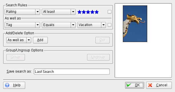 Any image collection soon becomes unmanageable if you do not find a means to search for the images you need and find them without much of a hassle. To help you organize your collection, digiKam offers you two search options: