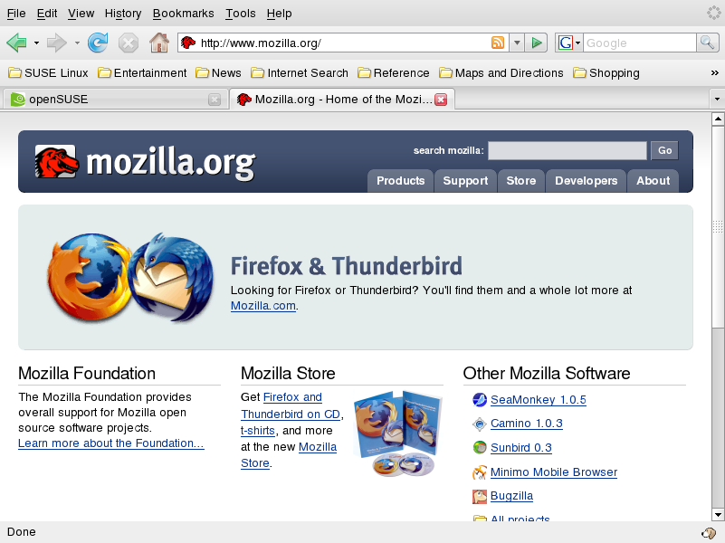Firefox has much the same look and feel as other browsers. It is shown in Figure 13-1. The navigation toolbar includes Forward and Back and a location bar for a Web address. Bookmarks are also available for quick access. For more information about the various Firefox features, use the Help menu.