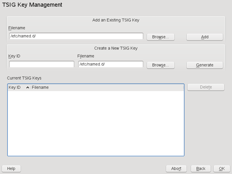 If you chose to configure dynamic DNS in the previous dialog, you can now configure the key management for a secure zone transfer. Selecting takes you to another dialog in which to configure the interface for dynamic DNS (see Figure 17-10).