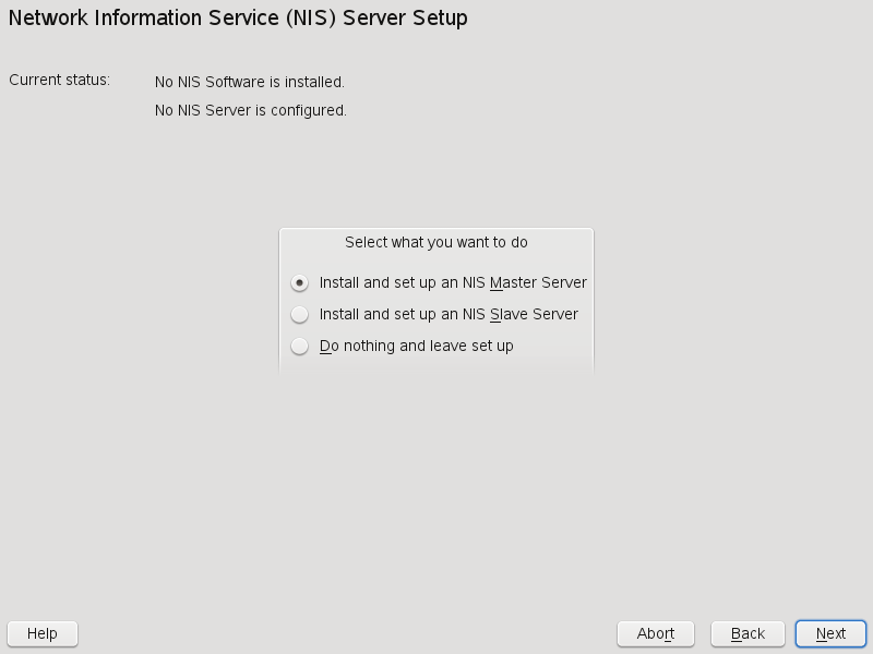 HINT:If NIS server software is already installed on your machine, initiate the creation of a NIS master server by clicking .