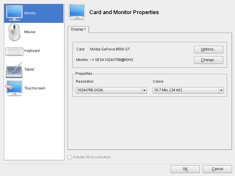 In YaST, click . SaX2 checks the system resources and displays the dialog.