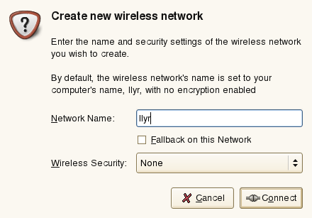 GNOME NetworkManager applet offers several possibilities to configure network connections. For quick and easy configuration of a new wireless (ADHOC) network, proceed as described in Section 10.5.5, Configuring Your Wireless Card as an Access Point.